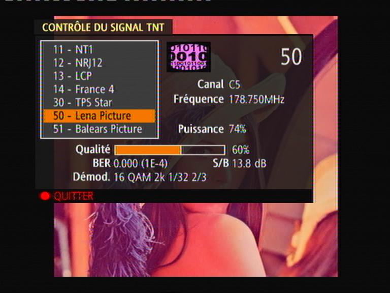 I used a patched version of FFmpeg to generate a custom DVB Transport Stream containing two DVB services. Each one contains a still MPEG picture. One of the still picture is the very nice Lena.