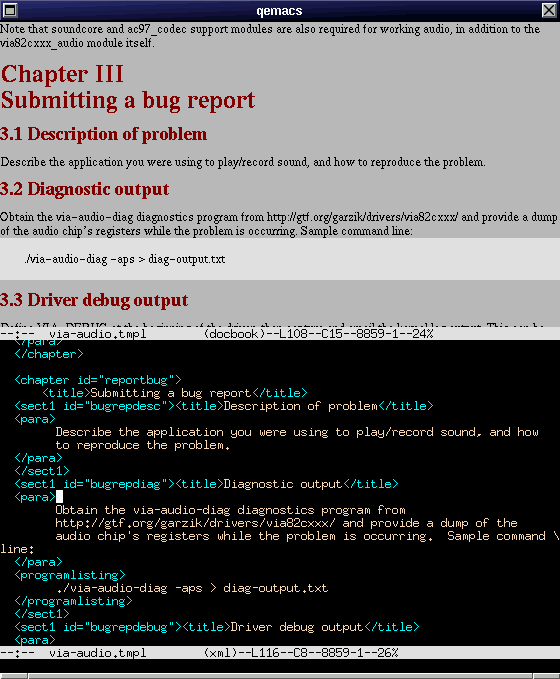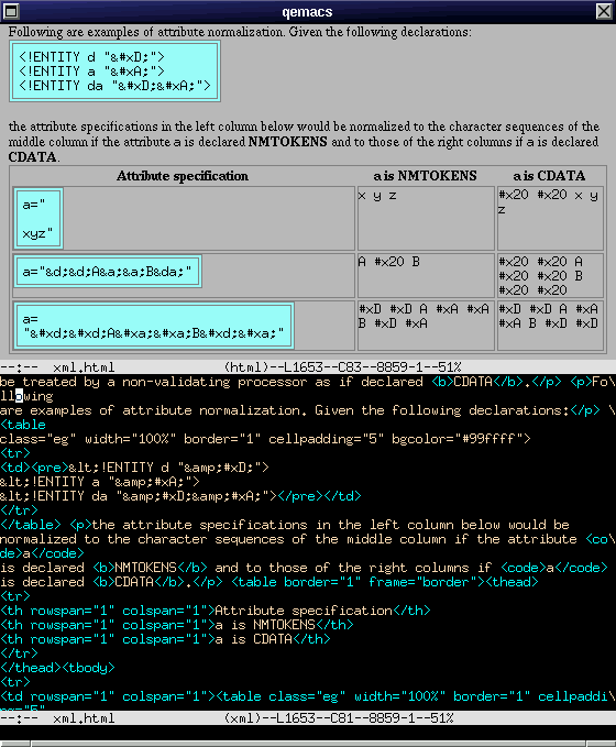 Since QEmacs has a generic XML/CSS2 renderer, it is not limited to HTML. A simple DocBook mode is also included based on a sample CSS2 style sheet: