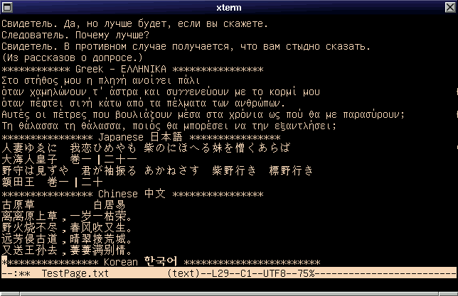 Editing an UTF8 text on a VT100 terminal (text example from the Yudit editor)