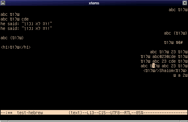 Editing an UTF8 text with Bidirectional editing (Hebrew example from the Fribidir library )