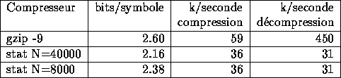 stat est seulement 2 fois plus lent que gzip en compression. C'est au niveau de la décompression qu'il est très nettement distancé. En effet, la méthode utilisée est totalement symétrique, alors qu'un décompresseur de type LZ77 est très simple et très rapide.